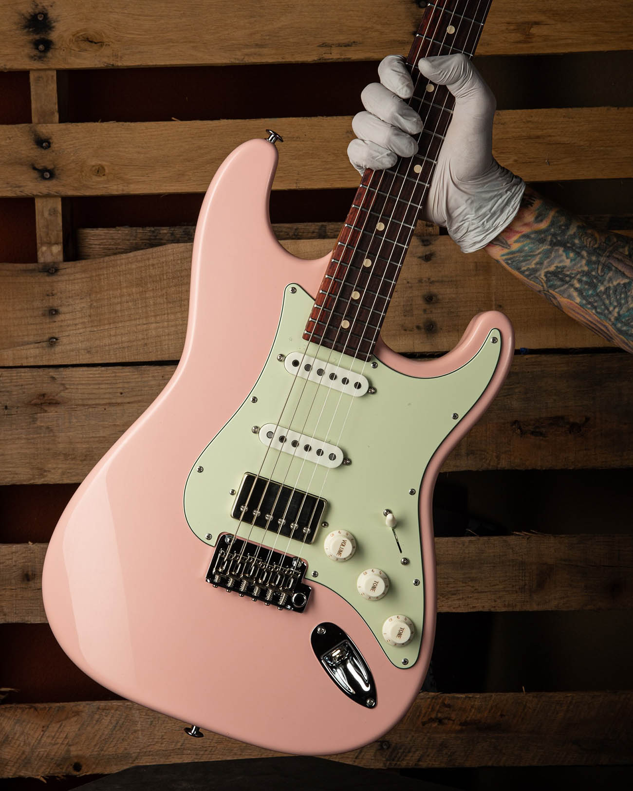The Mateus Asato Signature Series is available in two finishes: Gloss Black and Antiqued Shell Pink. Both models feature our Even C Medium neck profile, which is carved from silky-smooth satin finished Roasted Maple.